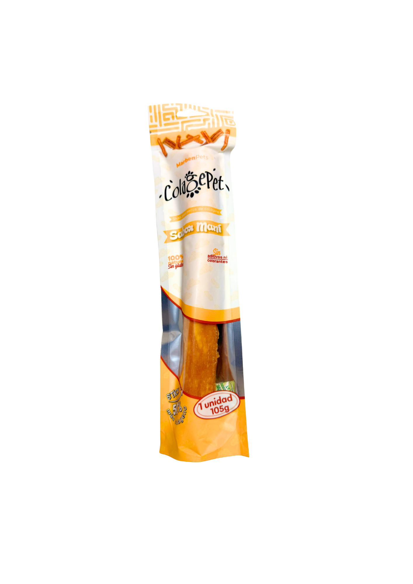 Stick individual natural sabor maní para perros. Delicioso snack elaborado con ingredientes 100% naturales sin gluten ni aditivos. Perfecto para premiar y consentir a tu mascota de forma saludable. Presentación de 105g.